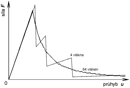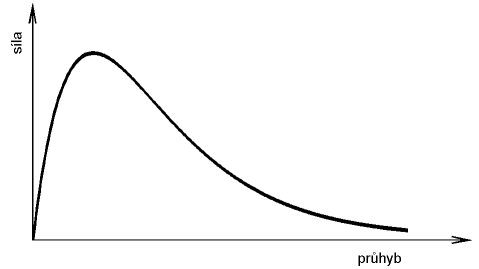 Obr. 2: Typická závislost síla - průhyb při ohybovém porušení