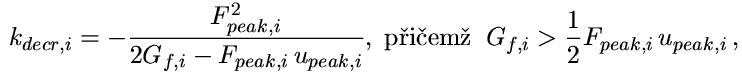 Funkce napjatosti bude pro každé vlákno definována parametry: tuhostí vlákna při pružném působení kincr,i , maximální tahovou silou Fpeak,i , kterou je vlákno schopno přenést (odpovídá tahové pevnosti vlákna) a specifickou lomovou energií vlákna  , potřebnou pro jeho přetržení (tento přístup je v souladu s principy lomové mechaniky). Ostatní parametry, figurující v definici funkce napjatosti (5), je možné jednoznačně stanovit ze vztahů: